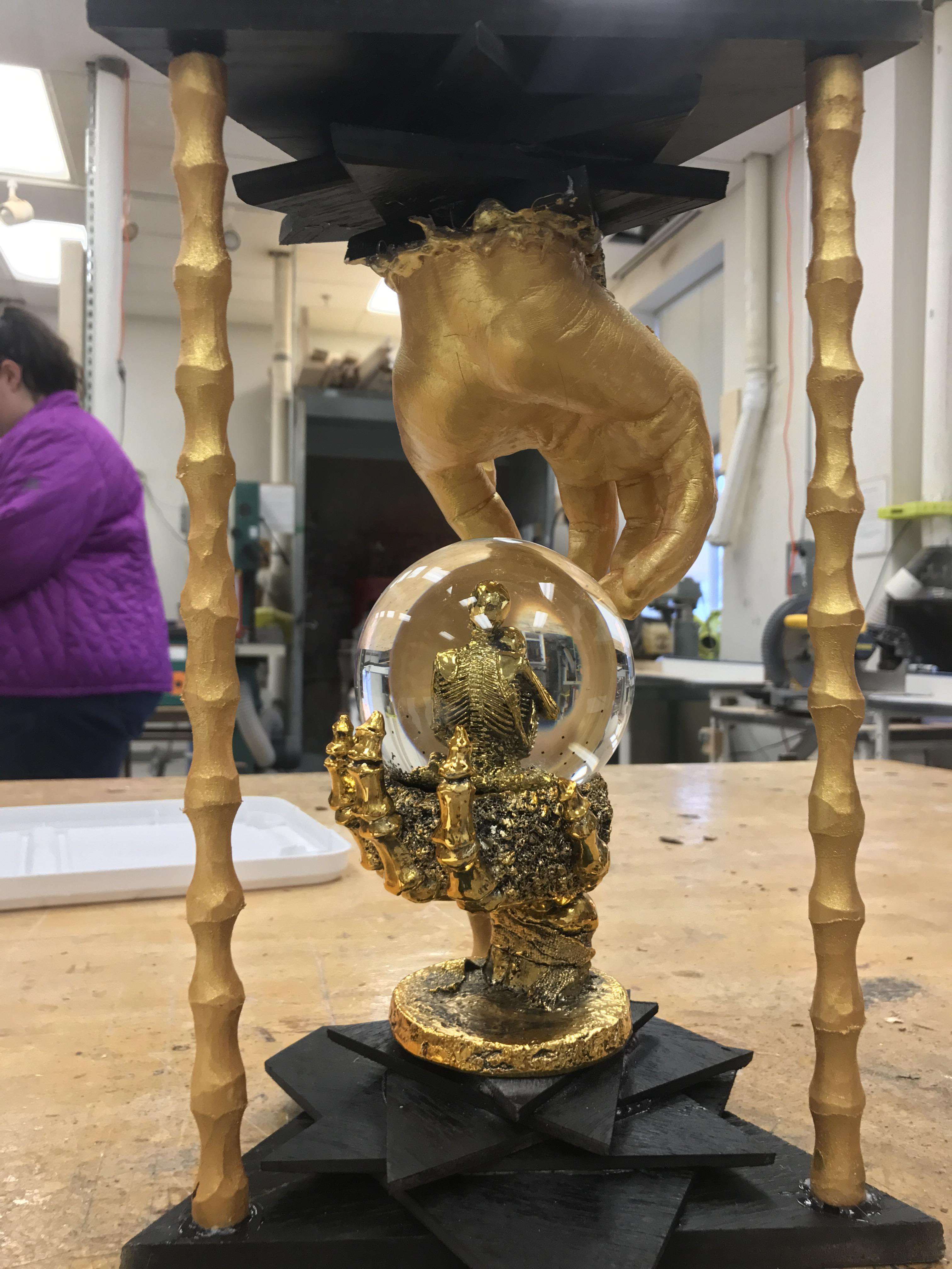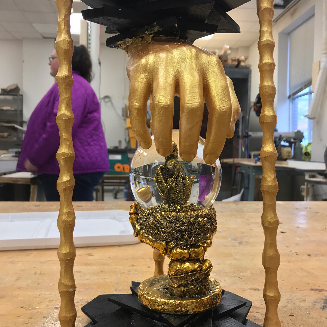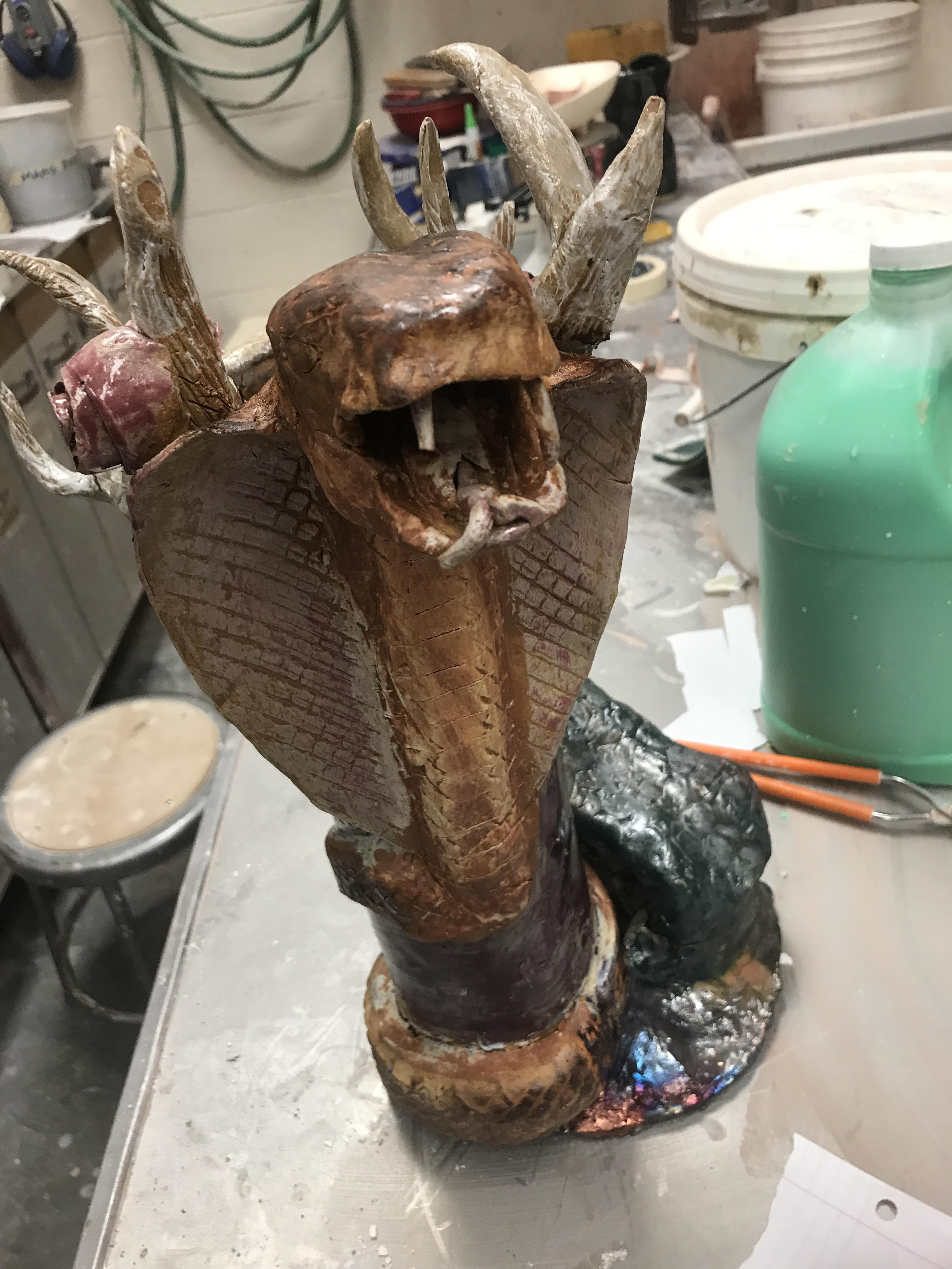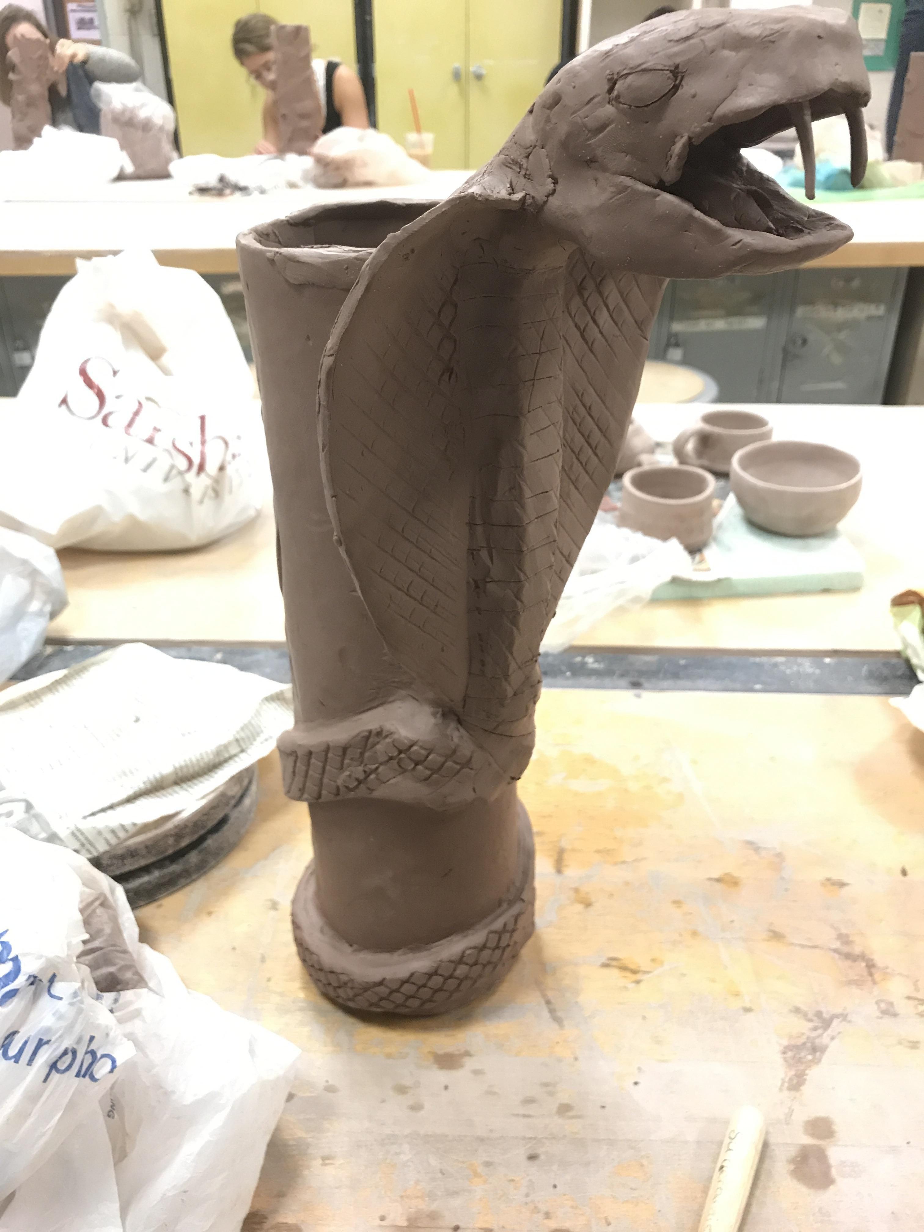 "Animal Totem" a ceramic totem made with different animals where different firing styles were used.