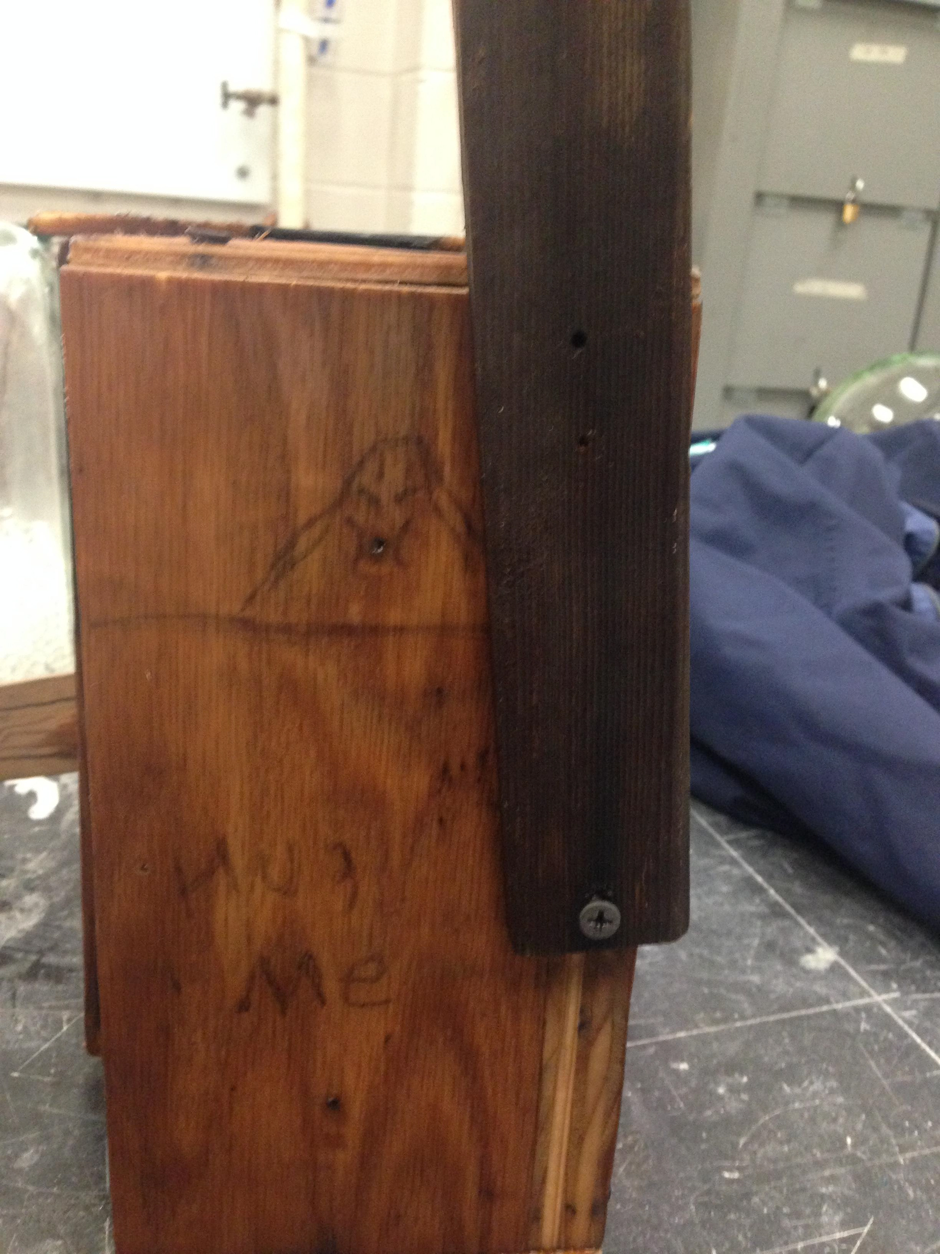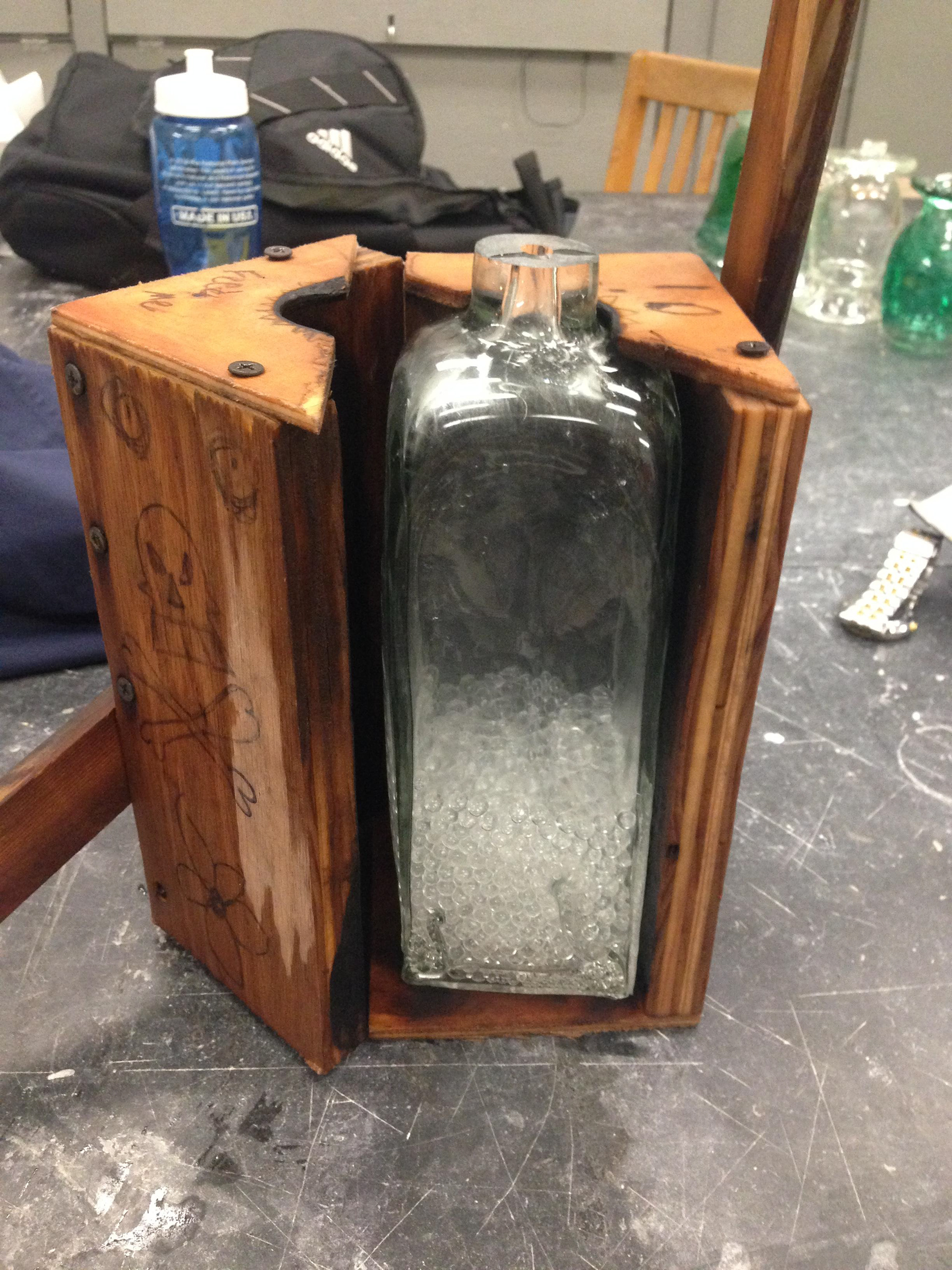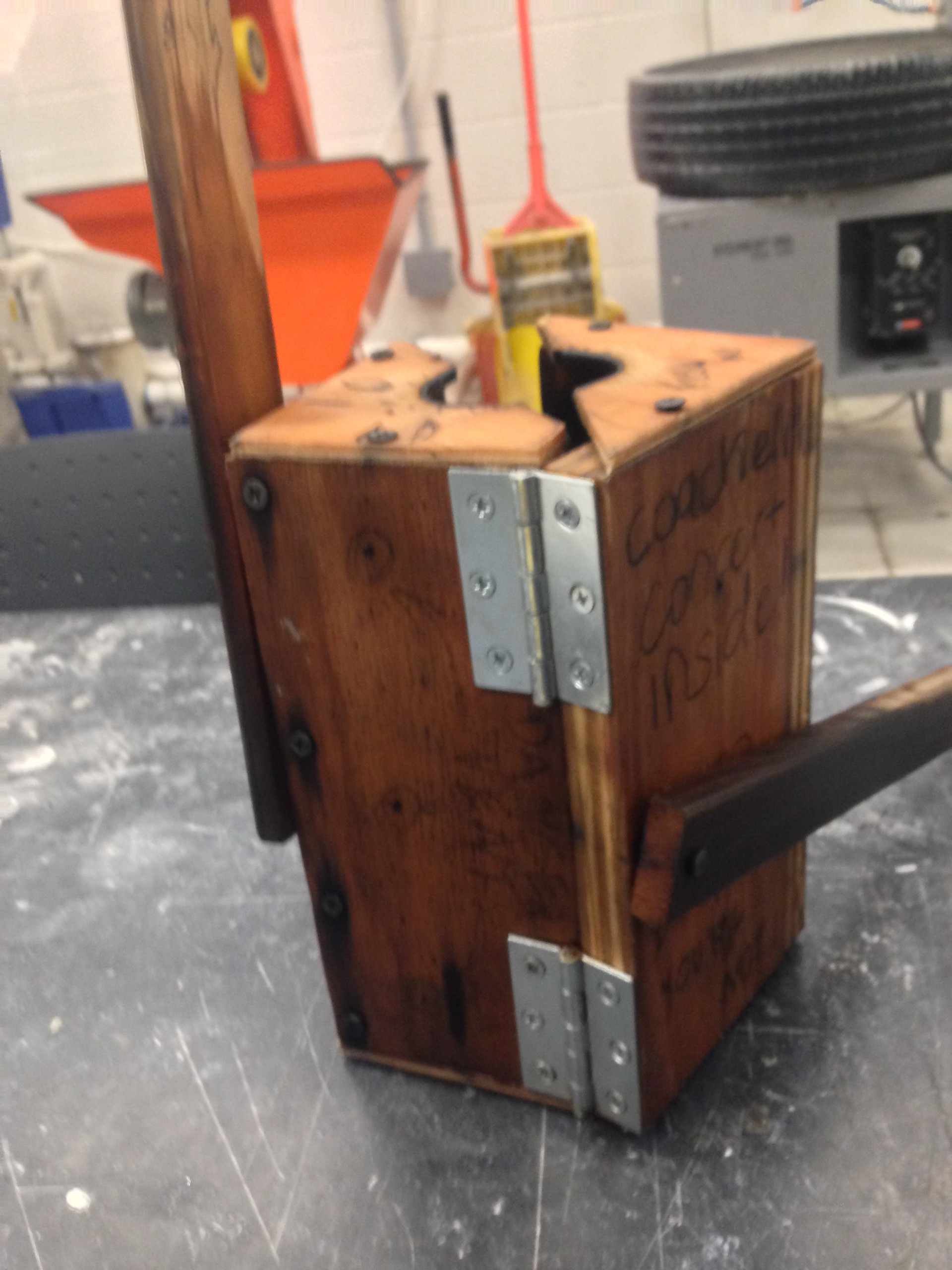 "Hot Box" a glass bottle mold with arm handles to open and close.